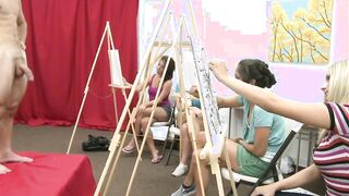 Lovely ladies getting embarrassed by the naked male models.