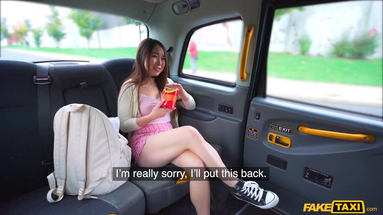 This lovely Chinese woman got into the taxi today named Yiming Curiosity. Yiming was visiting London from China, and asked me to take her to Buckingham Palace to do some sight seeing. I caught her eating in the backseat, and did not want a mess, so I asked her to put her food away. I kept catching her eating, and finally, she spilled chips all over the car! I was angry, so I pulled over to give her a piece of my mind. Trying to run away from me, she threw out her back, and asked me to call an ambulance. I had an idea of my own to help her, and starting to finger and lick her ass and pussy. All of a sudden, her back was better, and she was riding my cock. Yiming deepthroated my dick and gave me a sloppy blowjob, then put her tits in my face and she rode me cowgirl style. Finally, I fucked her doggystyle until she came, then pulled out and jizzed on her ass.