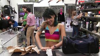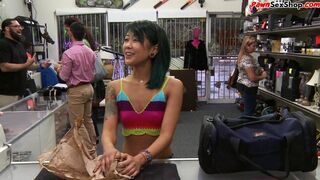 Asian pawnshop guest buffing the knob and getting doggystyled by owner