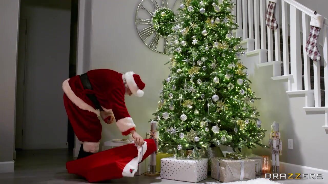 Ho ho ho! It's a Merry Christmas for Romi Rain and Keiran Lee, as they decorate the tree and open presents. Keiran gifts Romi a gorgeous candy cane dildo and the horny couple run upstairs to fuck. They didn't account for a curious Santa Claus barging in on them mid-blowjob though! Excited to see Santa, Romi improvises, tying the jolly old man to a chair and letting him watch her get fucked. Still horny after Keiran's balls are drained, Romi decides to put Santa on her naughty list as well!