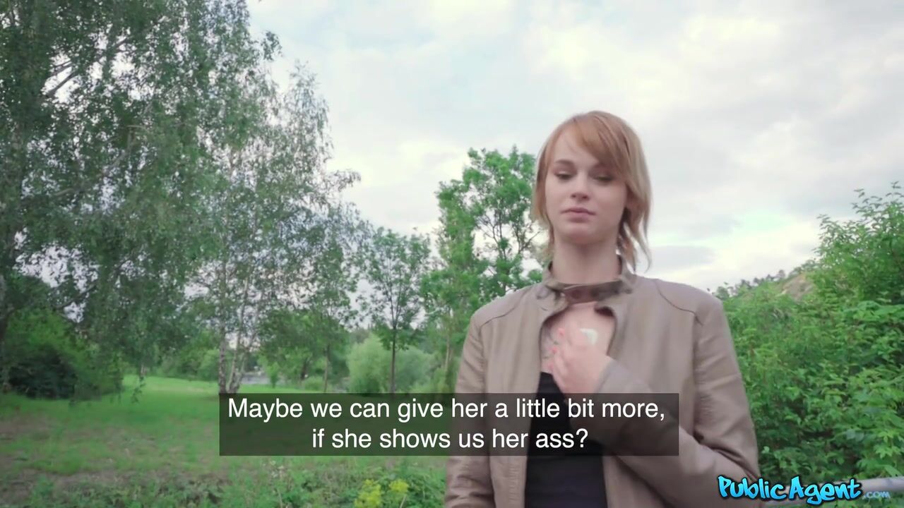 We saw skinny redhead Ariela Donovan hanging out by herself, so Martin and I approached her. Ariel didn't speak English, so Martin translated for me. She said someone had stolen her wallet, and was waiting for a friend to come get her. In a stroke of luck, I had some cash, so I offered her some crowns to do a quick casting. Artistic style, you know? She showed me some amazing tits, and when I asked to see her ass, I found her not wearing panties! For 10K, Ariela agreed to give me a blowjob, so we headed out to a little tunnel for some privacy. Ariela looked pretty slobbering on my big dick, then I stretched her pussy until she climaxed. Once she had cum, she hopped off my dick so I could cover her with a facial.