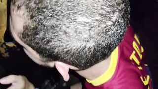 Young man sucking several turtledoves in the cabin's glory holle