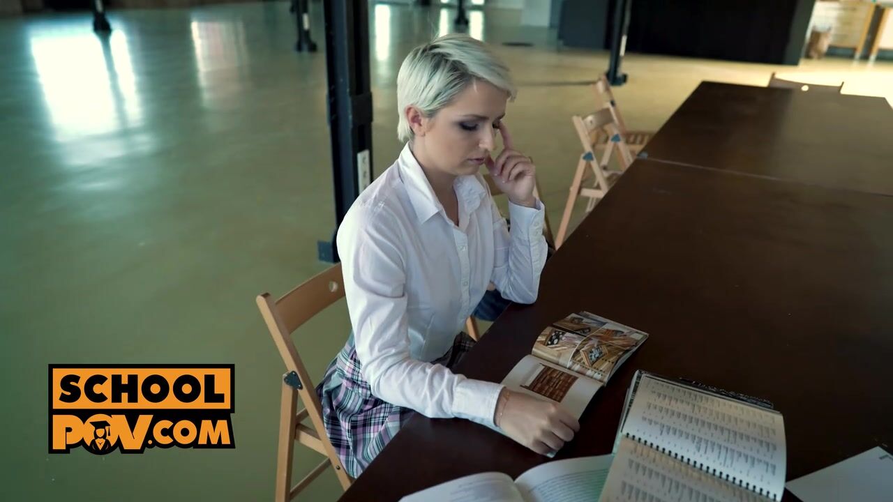Kittina snitched on your daughter and now she may get expelled, you want to investigate this rumour that caused the trouble. She's a cute blonde teen who also broke the rules and now you've recorded her confession.