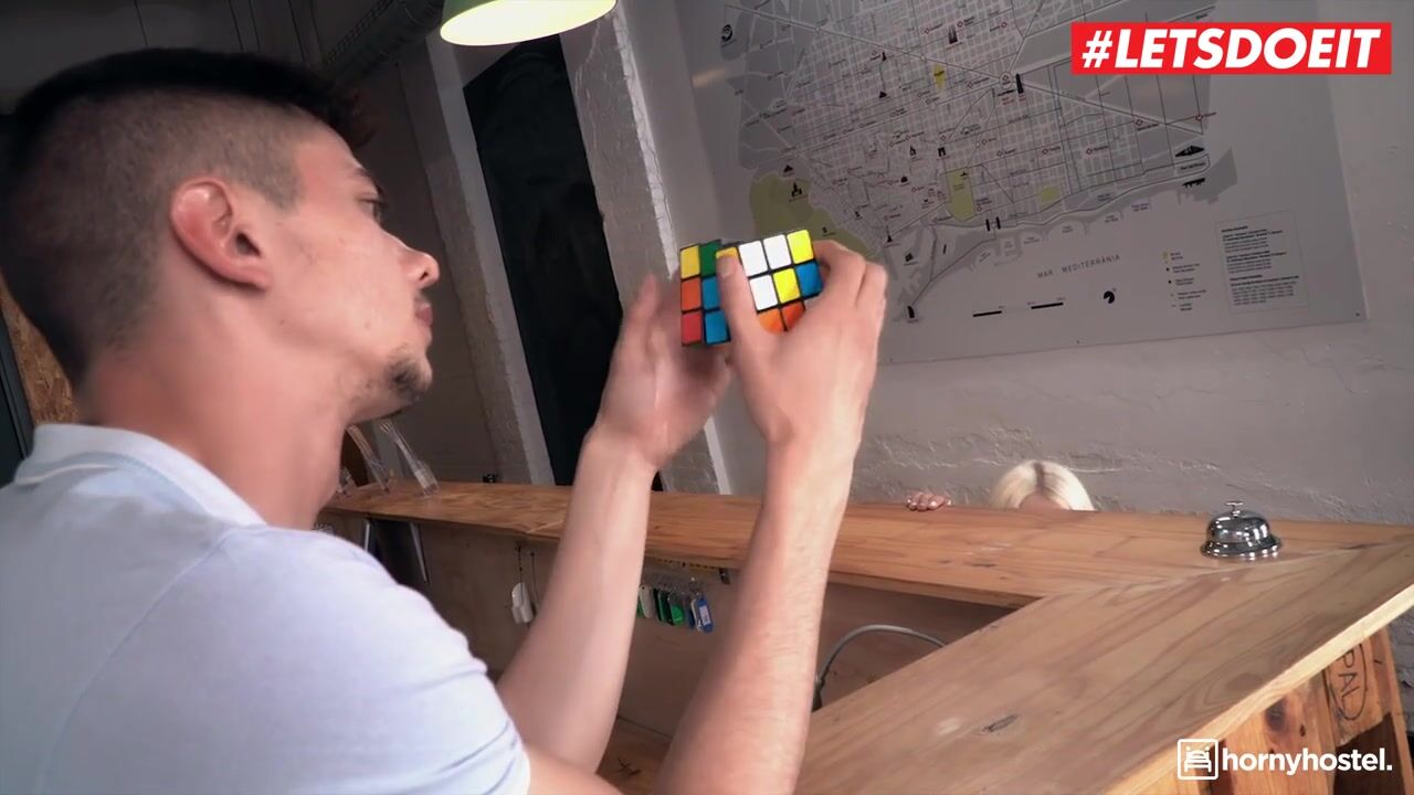 Just when Tommy was about to finish his Rubik cube, this hot blonde entered the hostel and charmed him with her kinky looks. After he took Arteya & her boyfriend to their room, he went back to the reception to try again, but this time he found his cock deep inside her sexy mouth. While the boyfriend was looking for his Russian lover, Tommy deepthroated her behind his reception desk, then he took care of the rest. He fucked her pussy nice & hard, then she rode him like a pornstar until her tits were cum covered sweet.