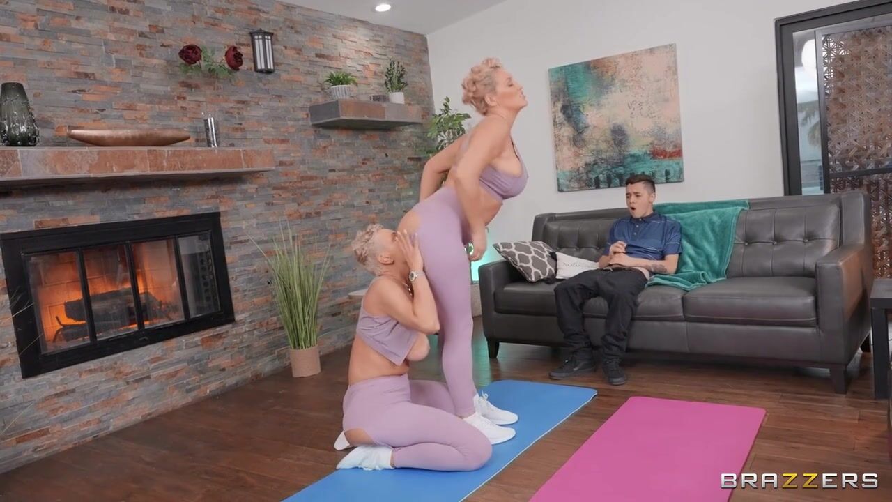 Ryan Keely just wants to have a relaxing day off and has booked a session with a new yoga trainer. When the trainer, Kaden Kole, arrives, it turns out that the two look... almost exactly alike. This causes confusion for Ryan's boyfriend's son Juan, who wants to make a move on Ryan, but ends up smacking Kaden's ass by mistake. Kaden likes the attention and encourages Juan to go further, leading to Juan sneakily fucking Kaden in the middle of Ryan's yoga lesson. When Ryan catches the other two fucking, she decides to put her yoga on hold and join the fun.