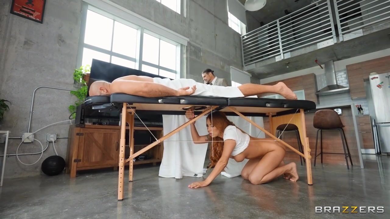 Scarlett Sommers has found the perfect way to cheat on her husband - by working as a masseuse from home! With JMac on the massage table, Scarlett oils him (and herself) up, rubbing her tits and body all over his big cock... And if the cheating wife needs to be extra careful, she's prepared, having cut out a gloryhole under the table for the perfect sneaky blowjob! This girl's got it all figured out!