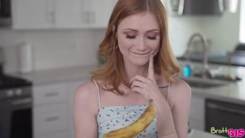<p>Fondling a banana gives redheaded minx Scarlet Skies an idea. Her brother, Alex Mack, comes to ask what’s going on. She stares at his crotch, then tells him that she was thinking about where guys’ dicks go when they’re wearing pants. Using the banana, Scarlet tests out a variety of dick poses until Alex tells her to cut it out. Later, Scarlet tells Alex that they’re supposed to be a family and that he needs to make it up to her that he was rude earlier. He can do that by telling her where the D goes while boys are wearing pants.</p>