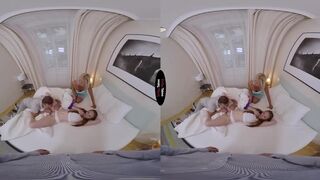 Lady Bug is turning nineteen today. Her family has a special celebration planned with balloons, presents and a homemade cake. Everything should be going smoothly, but her older brother is more concerned with flirting with mom, Kathy Anderson. This MILF is too horny to say no to his young hard cock even with her husband in the next room. They are not careful enough and dad catches them fucking. He is angry but doesn’t want it to ruin Lady Bug’s special day. In this VR Porn Scene, they bring her the cake and sing to her, but the pretty teen is behaving strangely. Dad pulls the covers off the bed and they all see that Lady Bug is using mom’s huge vibrator. It is clear how Lady Bug wants to celebrate her birthday and since brother is already turned on, he takes out his big cock. Dad joins the fun, grabbing the vibrator and working it on Lady Bug’s wet pussy. Mom joins in the VR fun, sucking son’s big dick with the birthday girl. Kathy sees how turned on her husband is and rides his dick while brother and sister bang just a few inches away. They trade partners so that Lady Bug can try a little of daddy’s dick. She can’t decide which one she likes the most and wants to try them again and again. Mother and daughter both fuck and suck until they end up with big loads of cock cream on their tongues. Don’t miss all the hot VR Fantasy action as this horny family gets naked and turns Lady Bug’s birthday into a taboo orgy.