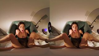 Pretty brunette Jenny Doll loves Halloween. In this holiday VR Fantasy fuck, she has more on her mind than just coming up with the perfect costume. She also has eyes on her studly brother. To get what she wants from him, Jenny dresses as a fortune teller. Under her long white robe, her bodysuit is almost completely see through. Looking super-hot she invites brother to have his future told. He sits down and tries not to stare at sexy little sister. Jenny tells him that she sees him meeting a beautiful brunette girl and wanting her. She tells him he will feel guilty at first, but that they will have the hottest sex he could ever imagine and eventually he will fall madly in love with her. Get an up close look at the fun as the Virtual Reality action heats up. Jenny describes the sex she sees and asks him if his cock is as huge as she sees in her crystal ball. He is embarrassed, but she insists on seeing it. Jenny takes it out and finds that his cock is hard and the biggest one she has ever seen. This is exactly what she hoped. Putting her mouth on it, she shows him how much she wants him. Now she wants to make her premonition come true by fucking big brother. He loves the way her tight pussy grips him on every stroke and can’t wait to bust his nut. Join the lovely Jenny Doll for this Halloween-themed VR fantasy scene.