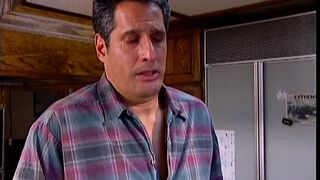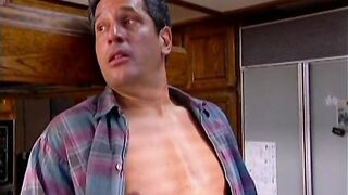 Young redhead slut is on her knees sucking older stud's dong in the kitchen