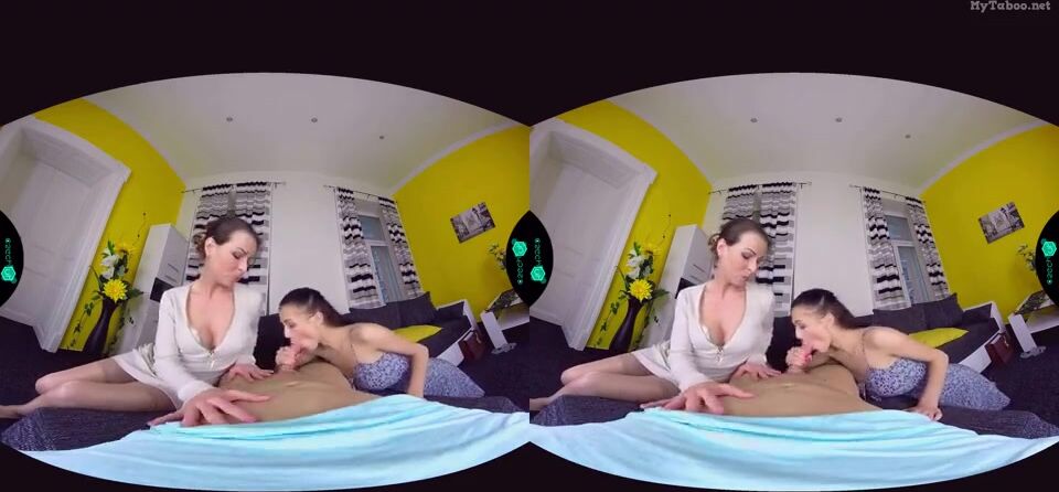 This guy and his sexy girlfriend Nicole went over to her stepmom Caroline’s place to celebrate Mother’s Day. He was a little shocked when he saw his girlfriend gave her a dildo. He was even more surprised when her mom pulled up her dress, dropped her panties, and had her stepdaughter help her fuck her shaved pussy with the big, new toy. After fucking her with the toy, the ladies decided to get the party started by pulling his cock out and sucking it. The horny MILF then climbed on top and slammed herself down on his big cock. She bounced on his dick until she came then she jumped off and let her stepdaughter take a ride on that cock until she followed in Caroline’s steps and came on his throbbing shaft. As her orgasm subsided the two went back to work on his cock using their mouths and hands to fully satisfy him.