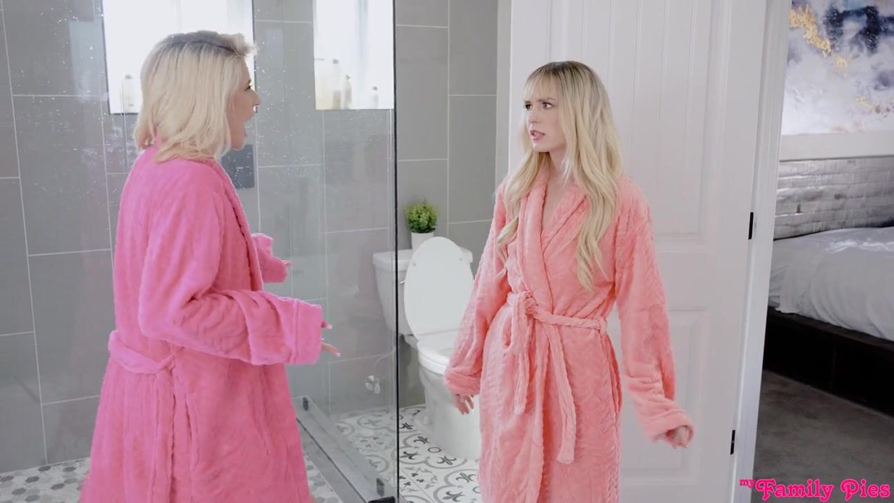 Lilly Bell is staying with her friend, Jessie Saint, but there's some serious friction between the girls. Jessie wants to take a bath, but no sooner has she undone her robe than Lilly shows up and picks a fight that she wants to take a bath. Since Lilly is a guest, she claims Jessie's mom says she can go first. A bit of a catfight leaves the girls naked together in the tub, each of them claiming they won't move. When they begin insulting each other's bodies, Lilly claims Jessie's big ass is taking up too much room and Jessie shoots back that Lilly's big boobs are taking up too much room. Lilly says Jessie's stepbrother, Joshua Lewis, likes her big boobs and that she'll fuck Joshua just to piss Jessie off. Jessie tries to play it off cool, but Lilly isn't done. She tells Jessie that she found her journal and now knows all about her family breeding fetish. When Lilly denies it, Lilly leaves the tub saying she's going to go fuck Joshua. Jessie makes it all of a few seconds before she gets up to follow Lilly.Lilly arrives at Joshua's door first, proudly naked. Confused, Joshua tries to ask what Lilly is doing. Lilly doesn't spend much time talking before she crawls into bed to pulls Joshua's sweatpants down and take his cock in her mouth. She's happily blowing Joshua when Jessie walks in, wearing her robe once again. One look at Lilly with her stepbrother's cock in her mouth is enough to send Jessie back into a rage. Shoving Lilly aside, Jessie takes over the BJ. Lilly isn't about to let Jessie have all the fun. The girls reluctantly begin working together to blow Joshua, deep throating his dick and sucking his balls until he's nice and hard, which makes it inevitable that they'd both want to bang him, too.Straddling Joshua's hips, Lilly takes the first turn riding him in reverse cowgirl as Jessie watches and pouts. Watching Lilly ride is hot, so it's not long before Jessie is masturbating beside Lilly. Eventually Jessie insists on taking a spin of her own, climbing onto Joshua's fuck stick to give it to him in cowgirl as Lilly spanks her ass. Lilly eventually masturbates beside Jessie, with a little bit of help from her friend. Lilly gets on her knees next so Joshua can give it to her in doggy as Lilly buries her moans between Jessie's thighs. Lilly brings Jessie off with a finger bang as Joshua keeps her pussy party going. The girls swap spots, with Jessie on her back spreading her legs wide open for Joshua to give it to her. Lilly cradles Jessie's shoulders and kneads her tits. When Jessie begins begging Joshua to cum for her, Lilly teams up with her to urge Joshua to deliver a creampie right in his stepsister's pussy. Filled with her stepbro's jizz, Jessie and Lilly gossip about how Jessie finally fulfilled her breeding fantasy.