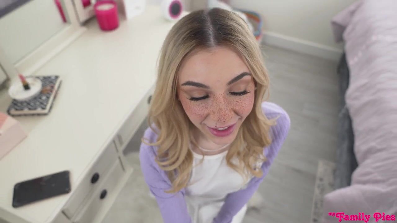 Demi Hawks and Diego Perez are working together to clean the kitchen. Their peaceful coexistence as stepsiblings is nice, but Diego can't help but see how hot Demi is. When Demi remembers that Diego was supposed to order a garden hose, she claims she'll do him a solid by using the mobile phone she's hiding to order one for delivery.When Demi gets to her bedroom, the real reason she wanted to leave becomes clear. She pulls up some all girl porn and starts rubbing her pussy. Diego walks in on his freckled stepsister with her hand down her pants. When Demi realizes that Diego is hard, she take she chance to get her hands and mouth on that nice cock. Once she's had enough of her deep throat BJ, she takes Diego by the dick and leads him to bed.Leaning forward, Demi encourages Diego to pull her panties down and fuck her from behind. From there, it's easy to get him laying down so Demi can ride him in cowgirl. Turning around, she keeps it up in cowgirl as her talented fingers rub her clit. Getting on her back, Demi spreads herself nice and open for Diego to bring her home. At the end, Diego finishes off inside Demi's twat in a creampie that she licks from her fingertips.