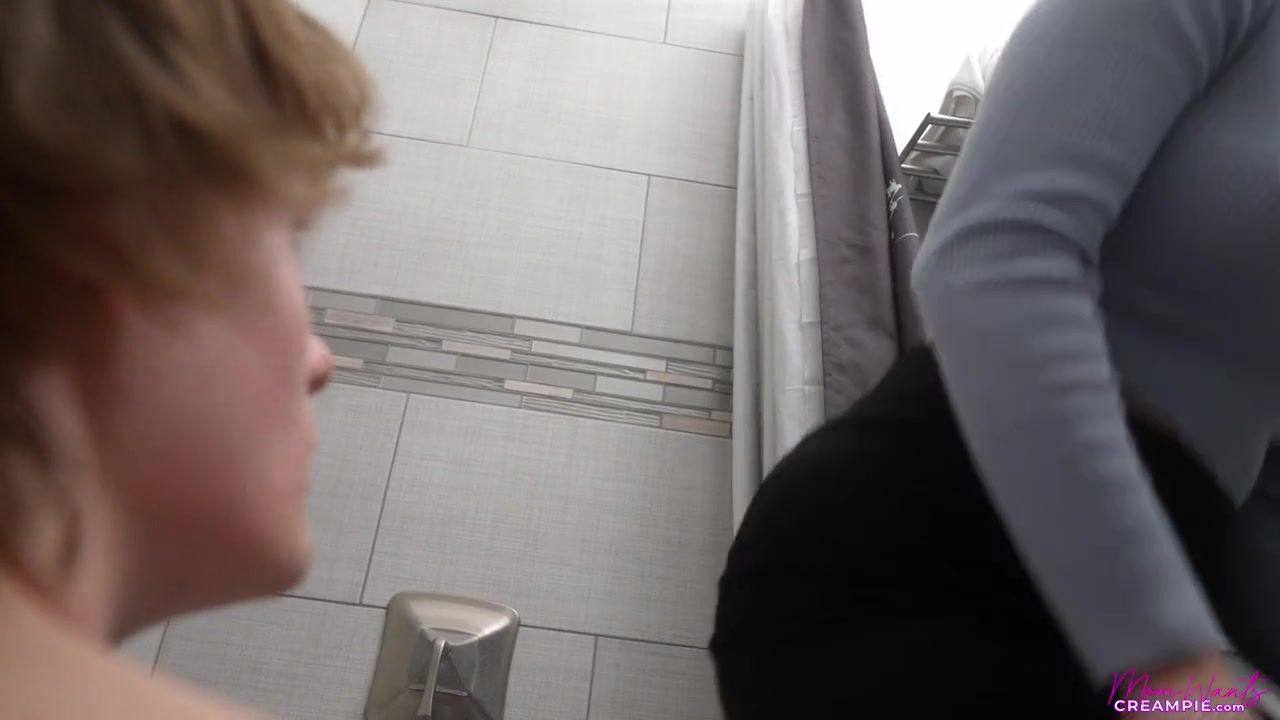 Spikey Dee is in the bathtub with a hardon when Skylar Snow walks in on him. She tries to talk to Spikey about his day, but Spikey is painfully shy under the circumstances. Skylar tries to put Spikey at ease by offering to wash his back, to which he cautiously agrees. When she's done, Skylar tells Spikey that she's going to go make dinner since his dad's out of town. She leaves him in the tub, conflicted that he has a boner from his bigtit stepmom.Later that night, Skylar is dressed in a skimpy nightie when she checks on Spikey getting ready for bed. She walks in on him in just his boxer briefs, then insists that she needs to help him get changed into clean underwear. Spikey tries to tell Skylar he's fine, but she insists. When she sees the size of his hardon, she goes on to announce that she needs to help him take care of that!Sitting Spikey down on the bed, Skylar gives him a handie. When he doesn't cum right away, she offers her jugs as visual stimulation and then goes ahead and slides down onto him to give him a nice stiffie ride. Cowgirl and reverse cowgirl still don't make Spikey blow his load, so Skylar sucks her girl goo off the D and gets on her knees for a doggy style pussy pounding. She ends their liaison on her back, thighs wide apart as she begs Spikey to deliver a creampie right in her juicy snatch.