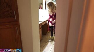 Stepmom prepares for bed while stepson watches and masturbates until he is caught and she lets him put it in