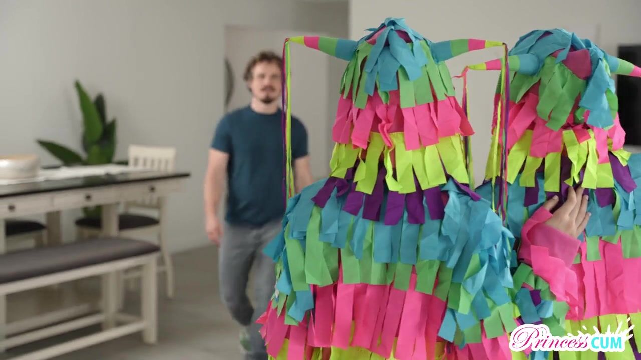 Lana Smalls and Molly Little are having a great time stuffing a pinata for Cinco de Mayo while Molly's stepbrother, Robby Echo, hangs out in the same room. Lana catches Robby checking Molly out and tells her friend. Molly admits she wants Robby to bust a big load in her, so Lana decides to help her friend out.The girls invite Robby to their party amidst plenty of sexual innuendo. They imply there'll be some pinatas there with some pretty great treats, so he'd better bring a big bat. Later, Robby returns to learn that the party is over. That's ok; Molly and Lana are dressed as sexy pinatas that Robby can still break open. He wastes no time in ripping the costumes off the girls. With Lana's encouragement, Robby spins Molly around sinks balls deep into her juicy coochie.The trio moves to the couch, where the girls blow Robby together. Molly helps Lana mount Robby's hardon for a stiffie ride. Once Lana gets on her knees for a doggy style pussy pounding, she can also eat Molly out for even hotter results. Then Molly scoots forward to enjoy Robby's cock in missionary as Lana licks her friend's toes. With Lana and Molly working together, they get Robby to blow a big load into Molly's coochie for Lana to lap up so the girls can play with the cum.