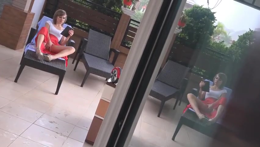 Mommy thought that she was alone at home, she could not see how I came home earlier from studying. She will relax on a sun lounger.