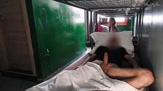 HOSTEL BLOWJOB: the big boobs slut wakes me up with a good blowjob and sucks all my cum