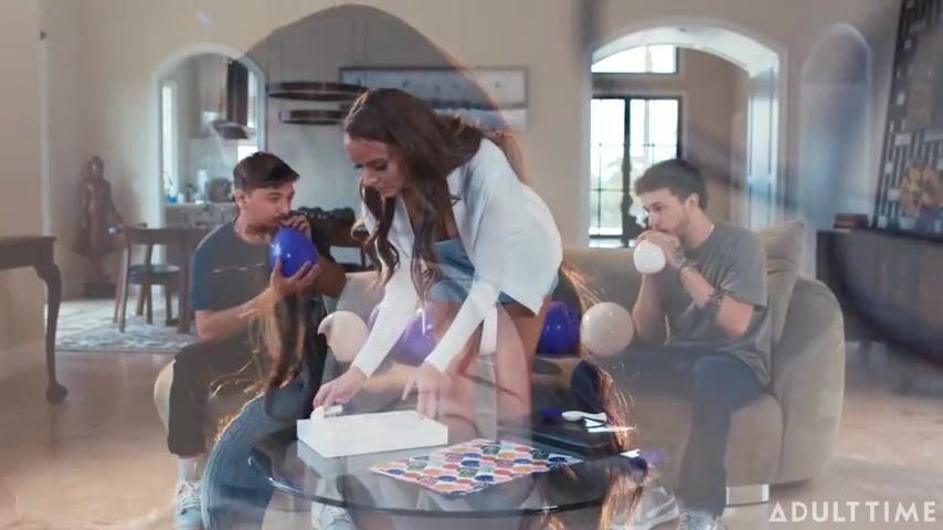 Max Fills arrives at his friend Apollo Banks's house and runs into Pristine Edge, who is Apollo's stepmom. Pristine is on a stepladder, setting up the living room for an upcoming party as she warmly greets Max. As Max sits down nearby and makes smalltalk with Pristine, he notices that she isn't wearing any underwear, which shocks but entices him. When Apollo enters, Max takes him aside and tells him that Pristine isn't wearing panties! Although Max is taken aback at first, even HE can't help but be enticed. The boys then conspire to 'help' Pristine set up the party so that they can sneak peeks up her skirt...Pristine is thrilled that the boys seem to want to help her, not suspecting their true intentions. The boys help Pristine with various tasks while secretly finding ways to hungrily look up her skirt. In an attempt to get a more prolonged view of Pristine's pussy, the boys offer to give her a foot rub together. However, Pristine soon catches them staring up her skirt and realizes that she isn't wearing underwear.Instead of being angry at the boys for sneaking peeks up her skirt, Pristine is surprisingly flattered and aroused, which leads to a cheeky threesome!