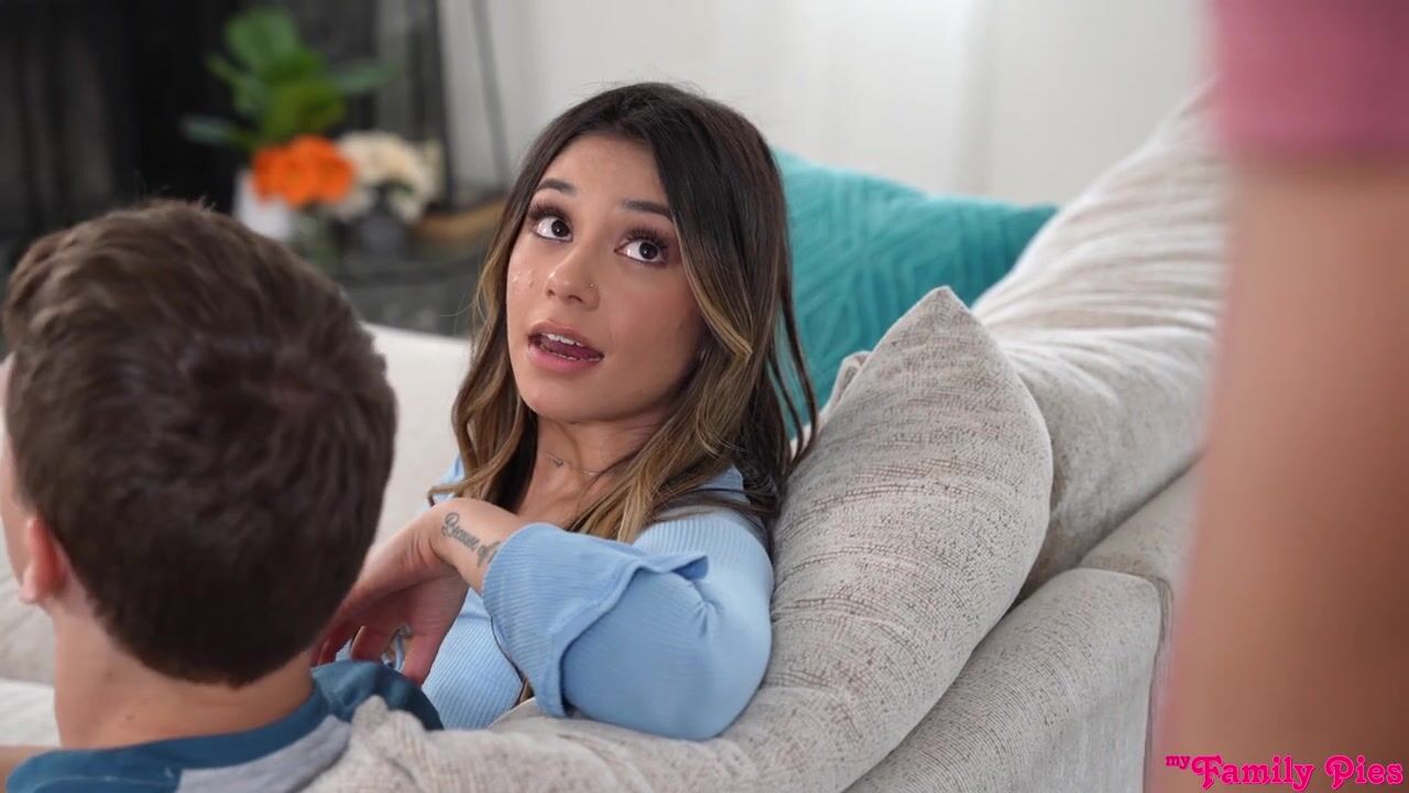 Xxlayna Marie and Rion King have been dating for a bit. They're chilling on the couch when Rion's stepdad, Clarke Kent, comes to check on them. Looking backwards over Rion's shoulder, Xxlayna makes sexy eyes at Clarke. When Clarke walks away, Xxlayna comments to Rion that she's pretty sure Clarke really knows how to eat pussy. That comment just pisses Rion off and causes him to storm out.Bouncing over to the kitchen, Xxlayna explains to Clarke that she has upset Rion because she thinks Clarke can give some excellent pussy eating lessons. Rion walks back in just in time to see his stepdaddy getting very handsy with his girlfriend. Clarke tells Rion that he can't turn down this invitation even as he's leaning in to dip his tongue in. Rion is initially pissed, btu there's something pretty hot about his stepdad showing him the ropes.Moving to the couch, they get this threesome started with Rion eating Xxlayna's pussy even as Xxlayna sucks Clarke's cock. Turning around, Xxlayna gives Rion some of that good suck as Rion does her in doggy. She gets to suck her own juices from Clarke's fuck stick as Rion delivers his own doggy style pussy pounding. Then Xxlayna climbs aboard to ride Rion in reverse cowgirl while slurping Clarke's hardon. Rion nuts all over Xxlayna's chest, and a moment later Clarke delivers a creampie to leave them both fully sated.