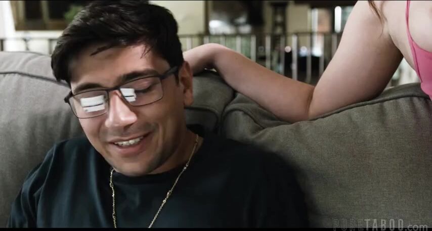 <p>Spencer (Max Fills) is busy reading from his tablet when his stepsister, Violet (Leana Lovings), enters. Spencer spots her and looks a bit tentative as if he doesn't like her very much. Violet asks Spencer what he's reading, and he replies that it's a fantasy story. She mischievously asks him why he's reading about fantasy when he can experience the real thing, and lowers her top to reveal her bare breasts. Spencer is exasperated, complaining about her repeated attempts to seduce him.</p>
