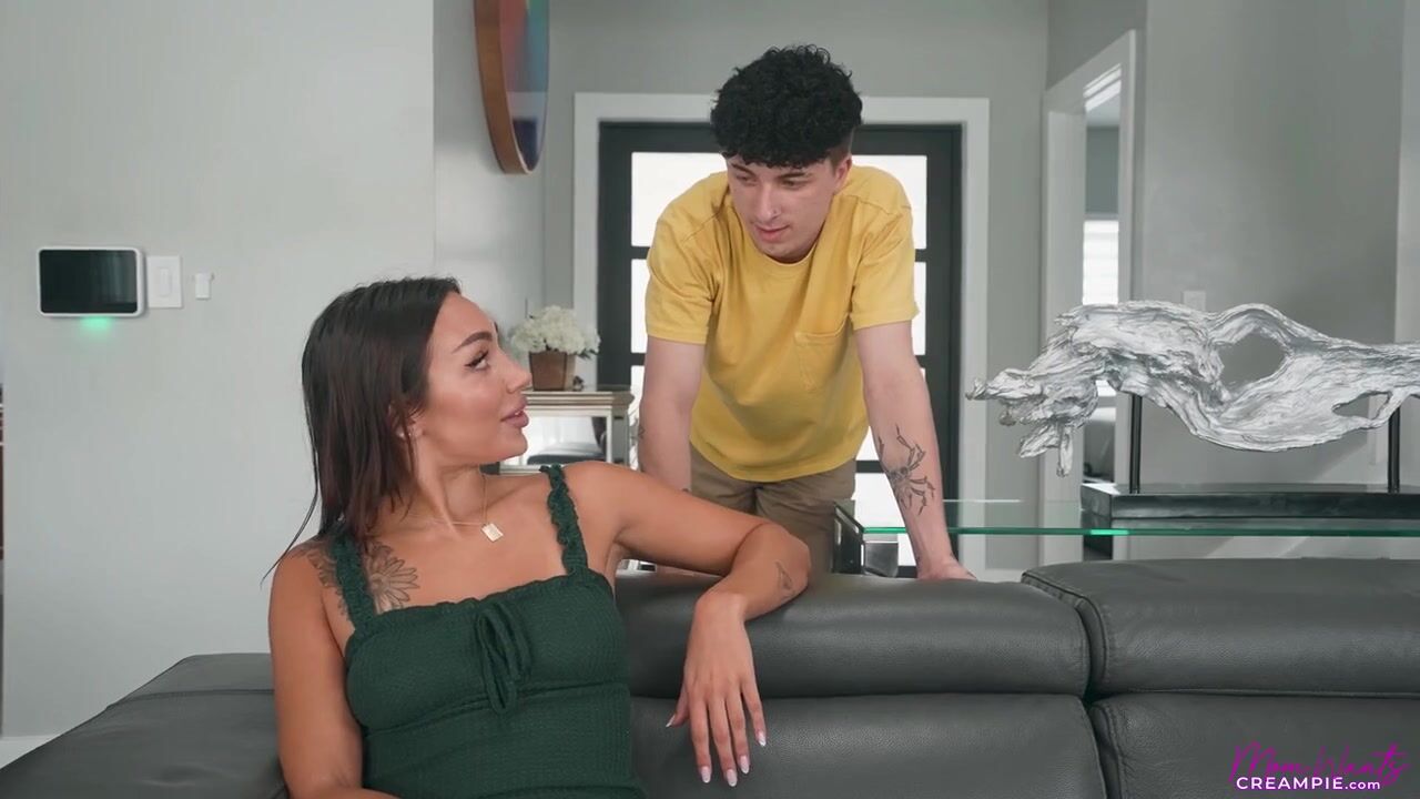Ethan Seeks is thinking of his stepmom Sisi Rose as he asks her what she wants for Christmas. Sisi thinks it's a bit early to be asking about that, but Ethan really wants to get the perfect gift for her to celebrate their first holiday season together. After thinking about it, Sisi claims that she can think of something. She whispers her idea in Ethan's ear.Ten minutes later, Ethan joins Sisi in her room. She has changed from her dress to her favorite set of lingerie, doubling down on her idea that a creampie from Ethan is her perfect gift. Sisi's seduction continues as she strokes her stepson's hardon, then urges him to eat her out so he can see just how wet and ready she is.Sisi takes the opportunity to suck Ethan off before getting on her knees for her pre-holiday dicking down. After getting some in doggy, Sisi rolls onto her back and holds her legs apart for Ethan to give it to her. She rides him next, bouncing away on that fuck stick in both cowgirl and reverse cowgirl. That final position milks the climax from Ethan so that he fills Sisi's snatch with the promised creampie.