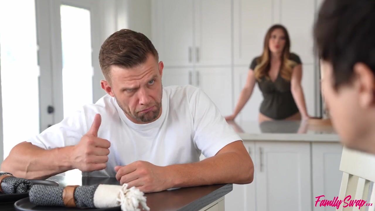 What would happen if four families each contributed one member to create a new family? In this episode of Family Swap, Madison Wilde can't stop feeling her swap brother Ricky Spanish up. She's stroking his cock at the dinner table right in front of her swap parents, Lindsay Lee and Vinvce Karter. When the swap parents step out for a moment, Madison flashes her titties just in time to get caught and sent to her room.Vince and Lindsay don't know what to do with their swap son and daughter, but they think maybe giving them a taste of their own medicine might help. Leaving Madison and Ricky at the table, Lindsay and Vince go to the kitchen where Vince feels up Lindsay's big tits and begins fucking her from behind. When Ricky and Madison finally notice, they want in on the action. Lindsay is down, and Vince is too. Soon, Madison is on her knees sucking Vince off and Lindsay is doing the same for Ricky.Now that they've committed to fucking, it's a simple thing for Lindsay to get Ricky to sit down so she can tap that in reverse cowgirl as she watches her swap hubby dicking down Madison as she lays on her back. Madison gets to her feet and leans over the couch arm for Ricky to do her from behind, while Lindsay lays on the couch with Vince between her thighs. Taking a seat in the vacated chair, Vince pulls Madison into his lap in reverse cowgirl as Ricky gives it to his swap mom in cowgirl. Getting Madison on her back, Vince fills his swap daughter with a nice creampie. Ricky does the same for Lindsay as she gives him one last cowgirl ride.