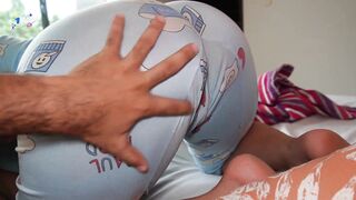 Sexy thin slut with tiny breasts sucks dick and gets a cock in her little anus