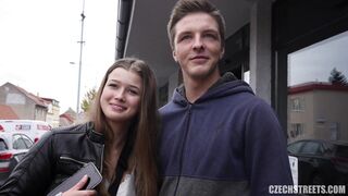 Greetings to all the friends of Czech streets, fucking in public places. I hit the streets with my camera and my pockets filled with cash because times are bad and every penny counts. I met a beautiful girl named Paja and her boyfriend Tomas. Under the pretext of filming an interview, I felt them up one by one and then went on the mission. In fairness, I suggested to Tomas that he sell me his girlfriend for sex, on the condition that he would watch. Well, let me tell you, it was a hard one. First, he wanted to smash my face, and of course, she categorically disagreed. I raised my offer and waited for their reaction. Everyone has their price and so I finally got permission to visit the pussy of the beautiful Paja. I fucked that pussy like the last dirty whore. I pulled her hair, spanked her ass, and enjoyed the way the unfortunate guy had to watch. He didn't last long, though, and he soon disappeared. So I cum for a second time and went too. I enjoy these interviews. Check it out and en