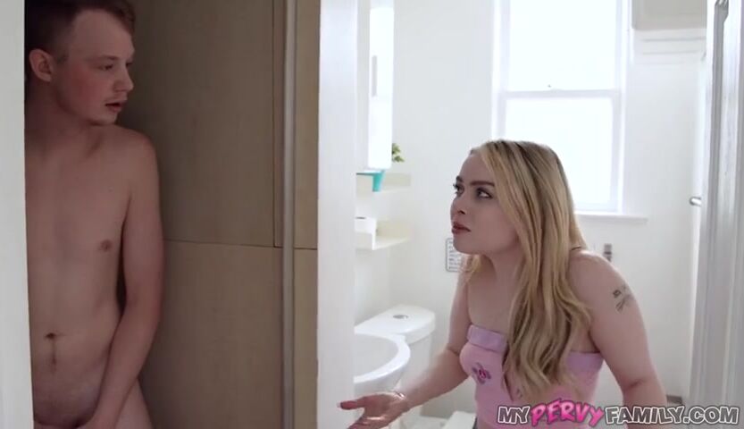 Dibs! A pretty common way amongst stepsiblings to call front seats, best views or even prime beds or bedrooms. Haley Spades is just too fast for her stepbrother Jimmy Michaels on their family vacation and calls dibs on the nice bed - leaving Jimmy a nasty old couch or crappy bunk. Jimmy at least gets to shower first but he takes forever and Haley isn't having it. She walks in on her stepbrother and catches him jerking off! Haley offers to finish him, if it'll speed things up and free the shower. Jimmy is surprised but accepts the offer and Haley begins to jerk her stepbro's big boner right there in the bathroom. She pulls her tits out to help him a bit and even drops to her knees to suck her stepbrother's cock. But Haley gets horny and tells her stepbrother they should go to the bed together. Jimmy eats his horny little stepsister's pussy and then thrusts into her from behind. Haley is impressed with her stepbro's big dick as he pounds away at her tight little pussy. Haley rides her stepbro, twerking her little butt all over his cock. Jimmy fucks his stepsister real good, making her cum repeatedly on his stiff knob. He finishes by nutting all over Haley's face - she excitedly runs to get her turn in the shower now!