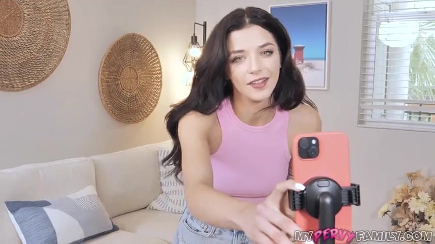 We live in a strange world. This is underscored when Jay Romero walks in on his stepsister, Jade Maris, filming herself for social media. Apparently, she wants to be an influencer. Jay doesn't really care about her ambitions, but Jade is hogging the TV room with her recording equipment. He just wants her to clear out so he can watch some boob tube. Jade agrees to hurry up and switches outfits quickly, giving her stepbrother a peek at her natural titties. This prompts him to spy on her as she calls her dad and asks him for money - Jade gets naked and sends him some pictures! When Jay walks back into the room wanting to watch TV again, his stepsister is horny! She wants to suck his cock and Jay lets her. So, he can watch TV of course! Later that day, Jade needs Jay to take more pictures of her. Jay agrees, but this time he wants more than a blowjob. His horny stepsister is down and spreads her legs so Jay can plant his big cock in her. Jade's pussy creams up as she gets stretched by her stepbro's thrusting dick. She gets on top and grinds her pussy all over his cock, making herself cum hard! Jade begs for her stepbrother to cum in her pussy and he fills her up with a hot creampie!