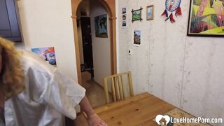 I fucked my stepmom's ass while she was stuck under the table. She loved it.