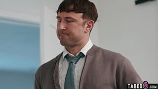 Hot MILF stepmom caught her stepson jerking off and helped him cum a minute before...