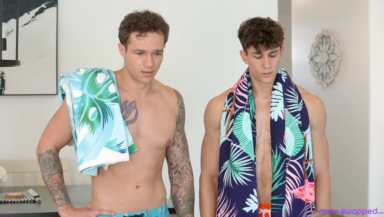 Wearing bathing suits that highlight their tits, Annie King and Bunny Madison go to apply suntan lotion. Their stepsons, Jayden Marcos and Parker Ambrose, can't help but watch as their horny stepmilfs rub themselves down. Jayden and Parker want to go to the pool, too, but Annie insists that they leave their phones to keep them from getting wet. While the guys are changing, the stepmoms snoop to find dick pics that are too big to believe!When Parker and Jayden return, their stepmoms confront them about the dick pics. They swear the pics are theirs, but when Annie insists on seeing Jayden claims he's soft. The milfs decide to swap stepsons and get them hard. Jayden gets to enjoy Bunny's big tits and hot mouth in a blowjob. Meanwhile, Annie works her housewife wiles on Parker as she blows him. The guys both get hard, and there's no turning back for any of them.Getting on her knees on the couch, Bunny offers herself to Jayden in doggy even as Annie gives Parker a reverse cowgirl stiffie ride. Bunny gets on her back next so she can watch Jayden doing her with that big boner, with Annie on her knees getting her pussy pounded while rubbing Bunny's titties. The ladies swap partner so they're each fucking their stepsons, with Annie banging Jayden on her side and Bunny riding cowgirl. Even as Jayden gluts Annie with a creampie, Parker spoons behind Bunny to give her the same sticky treatment.
