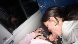 I suck an unknown passenger on a real bus and he cums in my mouth