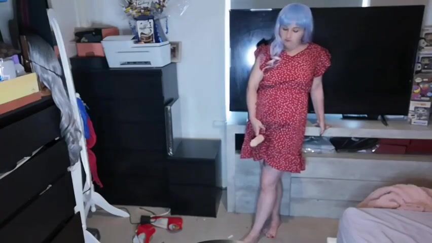 <p>Mommy keeps her dress on, you will catch views of her hard strap on.