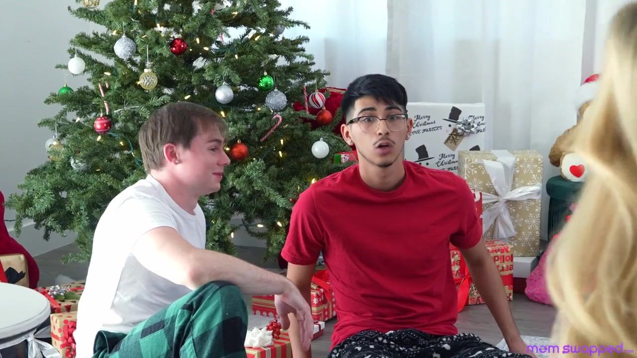 Whitney Oc and Kathryn Mae are working on putting presents under the tree. They get to talking about how good their stepsons have been this year. Then Kathryn admits that she could use anything at all in her stocking. She hasn’t gotten much action this year, but Whitney has a plan to change that.The girls wait until their stepsons are in bed and then come wait in the living room decked out in Christmas lingerie. They make enough noise to summon the guys, and then they present their pussies to be licked. Anthony Pierce goes for Whitney while Diego Perez goes for Kathryn. All is merry as the milfs get eaten out, and it’s about to get bright for all of them.Laying down shoulder to shoulder, Whitney invites Anthony inside and Kathryn gives Diego open thighs as well. Then the ladies swap stepsons so Kathryn can ride Anthong in reverse cowgirl as Whitney rides Diego in cowgirl. Swapping partners once again and getting on their knees, Whitney enjoys a pussy pounding courtesy of Anthony while Diego mirrors it in Kathyrn’s cooch. They finish on their knees, with Kathryn sucking down Anthony’s hardon and Whitney giving a merry Christmas BJ to Diego.