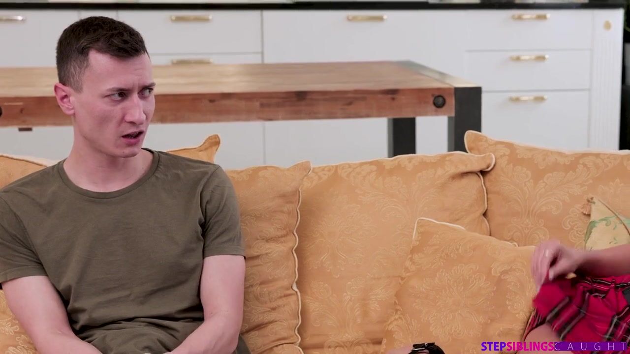 Olivia Sparkle needs a date, but the Internet is out. She needs to get some! After Olivia complains to her stepbrother, Charlie Dean, she realizes that maybe she can have a good time after all. She comes on strong, rubbing her foot against Charlie's thigh and talking dirty.When that doesn't work, Olivia reaches under her miniskirt and begins rubbing her cooch above her thong. Charlie tries to point out they shouldn't be doing this, but his hot stepsis isn't taking no for an answer. Removing her underwear, Olivia keeps on masturbating until she can talk Charlie into pulling his dick out. A moment later, she's sucking Charlie off in an enthusiastic blowjob.Not one to shy away from her chance at a good time, Olivia mounts her stepbrother's fuck stick in reverse cowgirl. She turns to smoosh her tits into Charlie's face in cowgirl. Then Olivia gets on her side so Charlie can spoon her while they keep fucking. On her knees, Olivia enjoys Charlie's sausage in doggy before she gets on her back so her stepbro can bring her off one final time. Charlie has just pulled out to cum all over Olivia's boobs when their parents walk in on them.