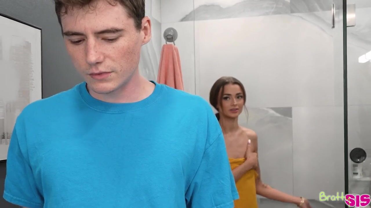 Nikki Nicole peels off her clothes as she prepares to jump into the shower. The super skinny coed is enjoying the warm water when it abruptly becomes cold. Wrapping herself in a towel, Nikki calls her stepbrother Jodie Johnson to ask him for his help. Jodie tries to tell Nikki that he has to study, but she throws the towel at him and says she'll let him see her naked if he helps her.True to her word, Nikki tells Jodie to come in and look his fill after he fixes the water heater. She invites him into the shower to wash her. Then Nikki washes Jodie, ending by soaping up his dick. She claims she's going to help him overcome his shyness as she strokes his dick, then gets on her knees to suck him off.After Nikki's deep throat shower BJ, they move to the bedroom where Nikki sucks Jodie off again and then climbs on top of him to ride in cowgirl. Jodie spoons behind Nikki and shoves back inside as she lifts her leg to help him go deeper. Rolling onto her belly, Nikki moans as Jodie plows her pussy. Nikki finishes herself off with a reverse cowgirl ride. Then she gets on her knees so Jodie can nut right into her mouth.
