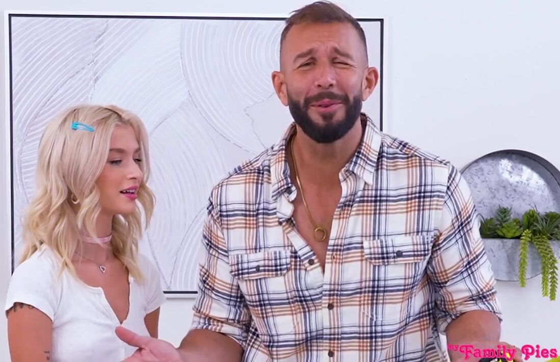 Will Pounder is trying his hand at being the featured member of Stepdad How Do I. His stepdaughter, Emma Rosie, is only interested in getting creampied, although Will doesn't know it. He thinks they're going to be working on using a measuring tape to redo the floor. Then he moves on to instructions for ironing.-Emma has spent the first part of the video flirting shamelessly with her stepdaddy. When it's time to iron, Emma insists on taking off her own shirt and wearing Will's. She bumps and grinds against his hardon as she attempts to use the iron, making her intentions very clear. By the time Will has attempted to show how to tie a tie, Emma has abandoned any attempt at subtlety and is just ready to go for the D.-Will finally gives in, feeling up his petite spinner stepdaughter and then laying down so she can properly suck his dick. Emma climbs on top for a stiffie ride right there in the studio before they relocate to the couch, where Emma rides again in reverse cowgirl. They spoon together as Will buries his fuck stick in Emma's snatch, and then he dicks Emma down on her knees. Right after Will creampies his stepdaughter, Emma reveals she's not on birth control.