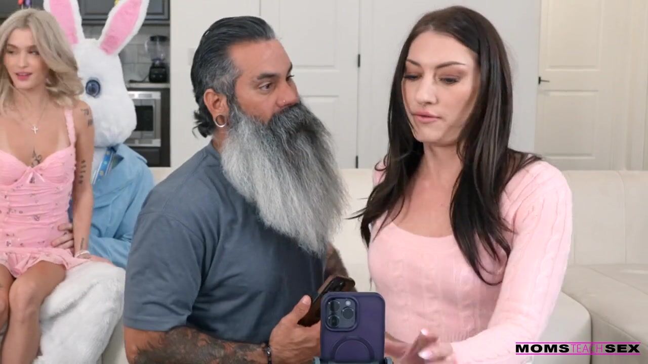 Whitney Oc and Joe Daddy are hanging out with their stepkids Emma Rosie and parker Ambrose dying Easter eggs. The stepfam is really in the Easter spirit, going so far as to hire an Easter bunny actor to take photos with them. Parker intercepts the bunny and pays the actor off so he can wear the costume and fool around with his adopted sister Emma while they're doing the group photos.Unbeknownst to Whitney and Joe, Parker begins banging Emma from behind during the photoshoot. Emma tries to hide what's happening when the photos abruptly stop so Joe can take a work call. Whitney figures it out almost immediately, and although she's initially ticked she changes her tune when she sees what a nice cock it is. Even after it's revealed that the bunny is Parker, Whitney decides to show her stepkids the ropes.They begin with a double BJ as Emma learns from Whitney's experience. Then Emma watches as Whitney enjoys a sitffie ride in reverse cowgirl. Whitney gets Emma on her back so she can show Parker how to dick her down. On her knees, Whitney demonstrates doggy while eating Emma out. The two girls help Parker pop all over them with a joint handie just as Joe walks back in and wants to know what the fuck is happening.