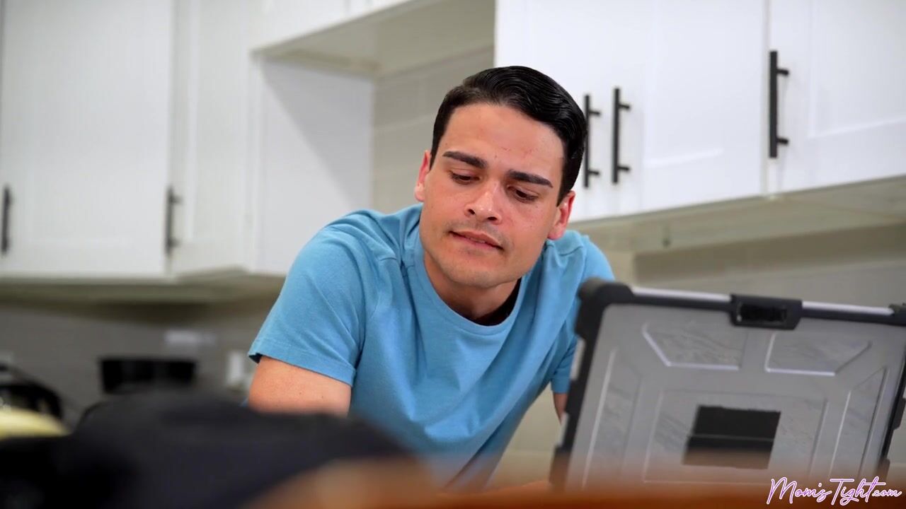 Leo Valentino is doing homework when his stepmom Ellie Tay comes home from the gym. He compliments how well she's been doing working out and dieting. Then Ellie goes to shower.While Ellie is hosing off, her phone rings. Leo answers and goes to pass his stepmom the phone just as she's toweling off. Leo can't help but overhear that his dad has cancelled plans on Ellie again. She's pissed, but Leo claims that Ellie deserves a cheat day. Ellie agrees, although she thinks she deserves a cheat on her husband day rather than a cheat on her diet day. Dropping her towel, she comes on to Leo so he can suck her nips before she pushes him down on the bed to blow him. Once Leo has lapped at Ellie's pussy, he spoons beside her and slides on home. Relocating between Ellie's thighs, Leo gives her the full D. Leo delights Ellie with a doggy style pussy pounding. Then he takes his own pleasure as he guides his cock to shoot his load into his stepmilf's open mouth to shower her with cum.