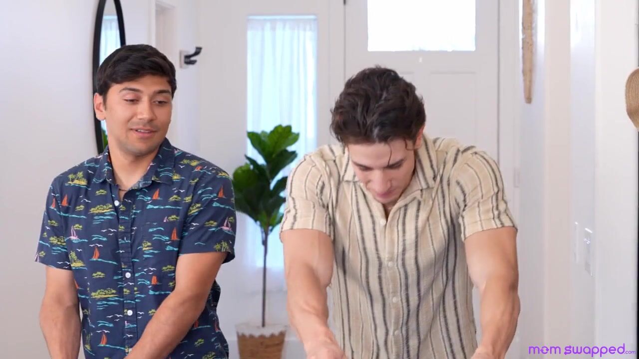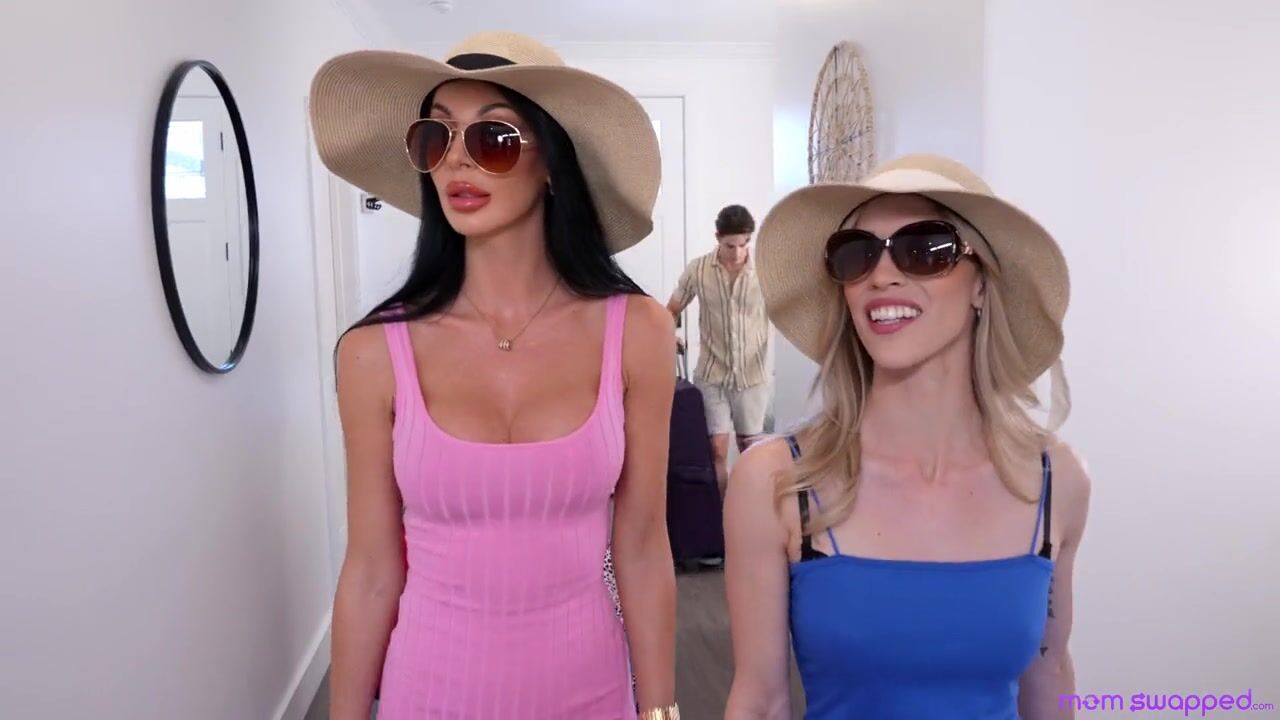 Nikita Reznikova and Diana Grace have arranged vacation for themselves and their stepsons, Parker Ambrose and Max Fills. Diana instructs the guys to take the bags to their rooms, then immediately takes her bra off. She encourages Diana to remove hers, too, and she accidentally flashes their stepsons.Later, the girls are in their bikinis when the guys walk in arguing because Parker doesn't think it's fair that Max got to see his stepmom's tits and he didn't get to see Nikita. They urge Diana to flash them next, then beg for a comparison. Next they beg the milfs to let them touch. It turns out Diana likes Max's hands on her boobies and of course Nikita likes the way Parker feeling her up.After the ladies find themselves blowing each other's stepsons, they decide that a vacation fuck is totally fine. Nikita puts Parker on his back so she can ride him in cowgirl while Diana takes Max's hardon from behind. The ladies swap so that Diana is enjoying her own stepson dicking her down on her back while Nikita lets Max do her from behind as she lays on her side. One more milf swap does the trick as Parker brings Nikita off and Max lets Diana ride her way to a big O. Back to back on the bed, the stepmommas deliver handies to each other's stepsons until they each get covered in a cum shot to start their vacation right.