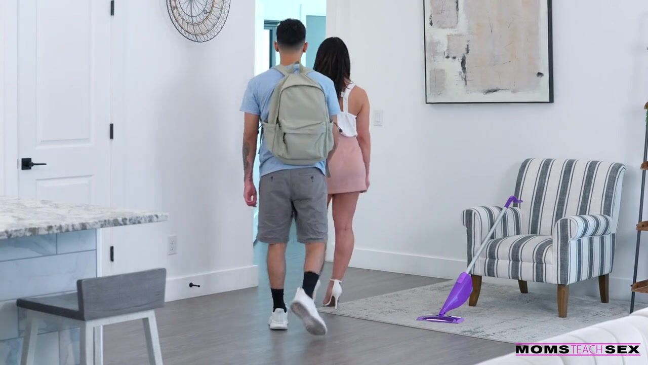 Diego Perez can't find his stepmom Whitney Oc. He's looking for a phone charger, but when he goes into Whitney's nightstand he finds her dildos. Whitney walks in on Diego staring at the collection, and she's a bit surprised to learn that Diego's girlfriend likes to use similar toys after sex. She offers some advice, but she suspects she'll need to do more.Sure enough, the next time Diego comes to talk to Whitney, it's because his girlfriend broke up with him. Taking Diego to the bedroom, Whitney teaches him how to seduce a woman. She starts with tit massage, then shows him how to use a vibrator to tease the clit. Pulling her thong to the side, Whitney tells Diego to rub his dick on stepmommy's clit. From there, she directs Diego on how to properly push it in.Once Whitney has that dick buried between her thighs, she's all about finishing the job. She sucks Diego off and then climbs aboard for a stiffie ride. Getting to her knees, Whitney guides Diego through doing her in doggy. He makes sure his stepmilf cums as she spreads her thighs on her back. Then, pulling out, Diego nuts on Whitney's belly. Whitney tells Diego they should definitely continue to practice together.