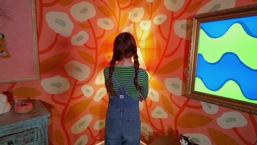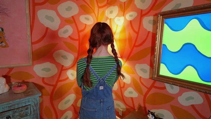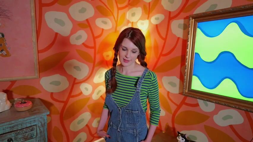 No sex in the video, this is more of a fetish video themed around her acting young and being punished. So if you like singing, red heads, braided pigtails, and roleplay this video might be for you.