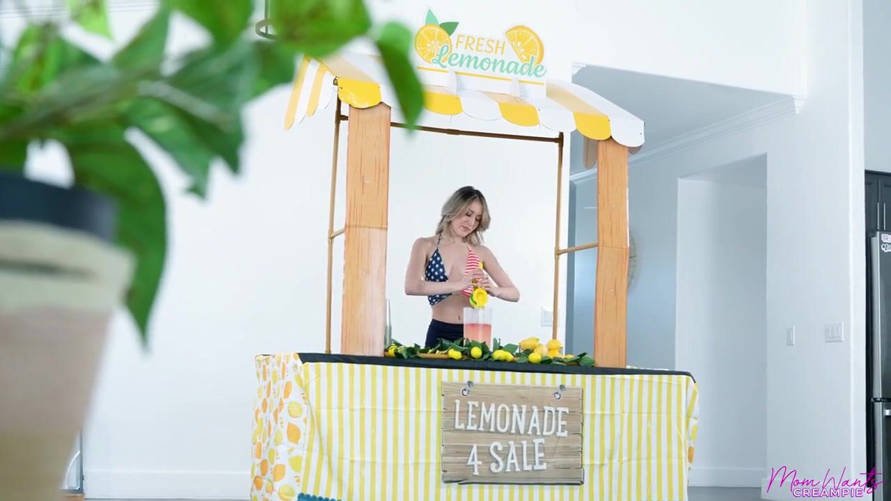 Sweet Sophia is making lemonade for the neighborhood blook party when her stepson Jimmy Michaels wanders in. They chat about Sweet Sophia's secret ingredient, and she claims that it's strawberries and cum. When Jimmy chokes on the lemonade, Sweet Sophia tells him she's kidding about the cum.Later, Sweet Sophia is on her knees trying to fix the hole in her lemonade stand sign when Jimmy comes in. Thinking he's alone, Jimmy whips his dick out to blow his load in the lemonade without knowing his stepmilf is watching him and getting hot and bothered. When Sweet Sophia can't quite hold the moan, she's rewarded by Jimmy sticking his dick through the glory hole for a handy that turns into a full on BJ.The glory hole continues to come in clutch as Sweet Sophia gets her pussy pounded from behind. When she finally comes out, Sweet Sophia rides her way to a good time on the D. Turning around, she gives Jimmy a reverse cowgirl ride so he can enjoy that ass before she hops onto the lemonade stand. Spreading her thighs, Sweet Sophia invites Jimmy to creampie her. In the afterglow, she comments that they'll need to do it again because her lemonade is still missing the secret ingredient.