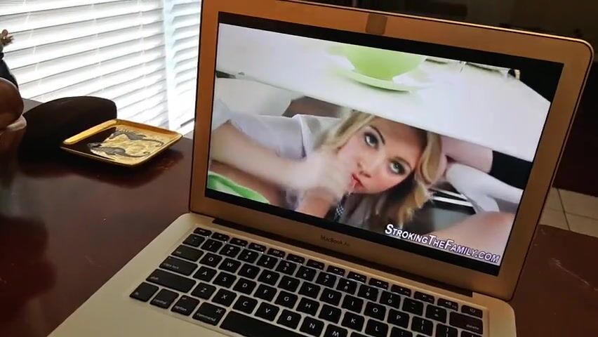 Step Daddy catches me masturbating to porn. He asks me what am I watching and to show him. I show him and tell him to sit down… I get under the table and start sucking his Cock until he Cums in my mouth