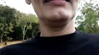 A hot older woman giving a blowjob to a pedestrian in the middle of the street during the day.